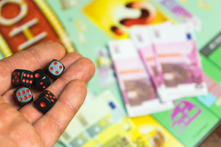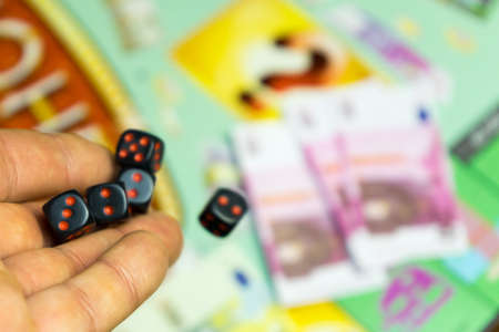 Russia / Saint-Petersburg -30.10.2019: The dice game: hand throwing game cubes