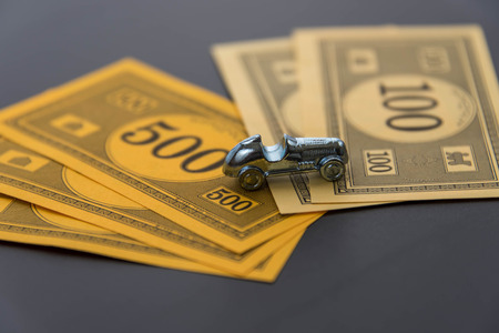 February 8, 2015 - Houston, TX, USA. Monopoly car and money