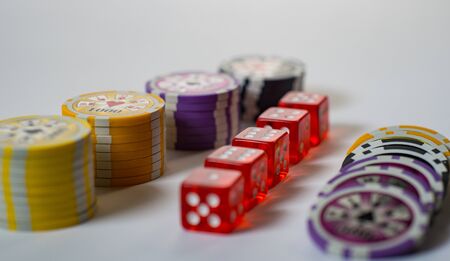 poker. playing chips are stacked as a bet