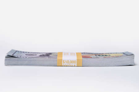 Stack of $ 10,000, ten thousand dollars, isolated on a white background