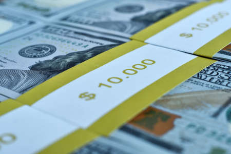 USA dollars bills are stacked in bundle. Business, finance and economic success concept. Close up