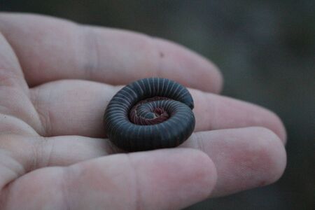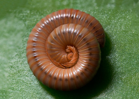A centipede with its legs and body coiled up