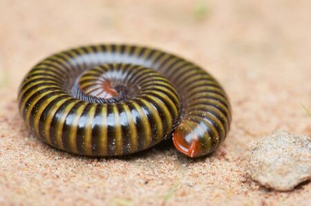 Close up of Millipede on the soil ground
