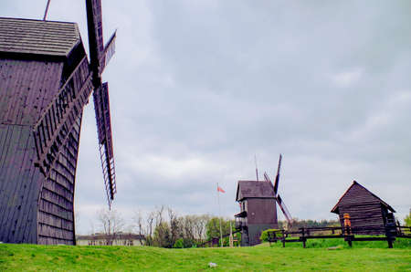 Blades of an ancient windmill. Mikhailovskoye Estate, Pushkin Mountains. Pskov region. Russia