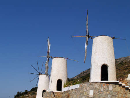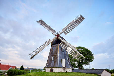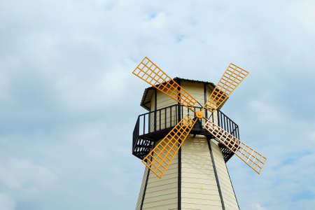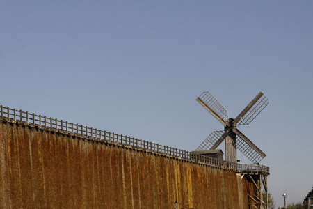 Traditional medieval wind mill for milling flour from wheats. . High quality photo