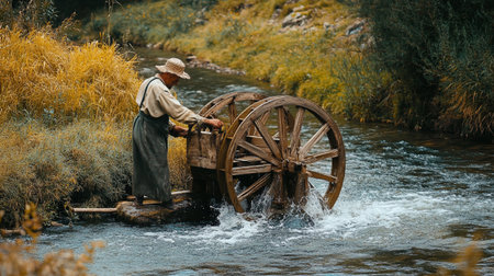 Water mill wooden wheel Generative AI