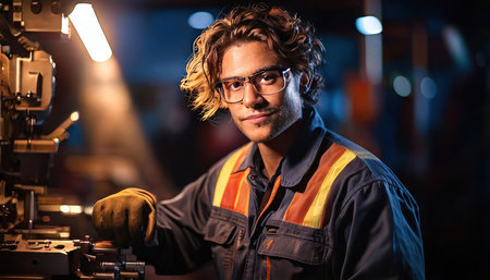 Young apprentice demonstrating precision and expertise in a mechanical workshop, highlighting skilled trades and vocational training