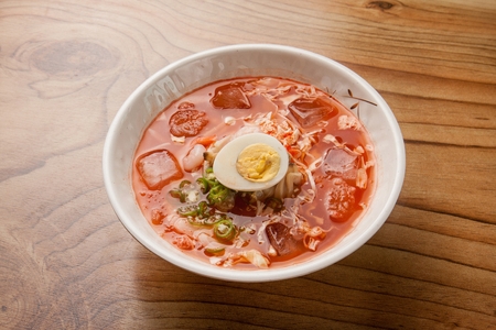 Cold spicy chinese style seafood noodles soup, Jjambbong