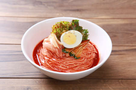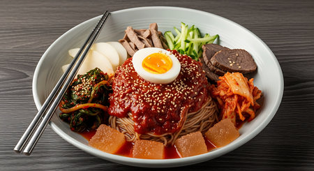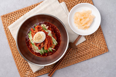 Korean spicy cold noodles - bibim makguksu or bibim guksu - Korean food style