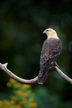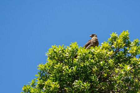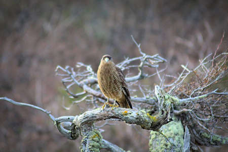 Caracara plancus or Crested Caracara standing on a branch watching over the hills