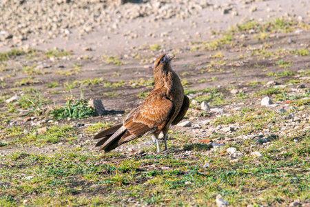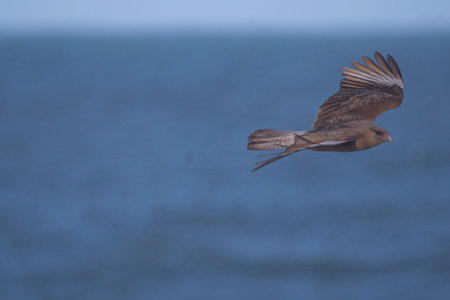 Patagonian caracara in full flight. caracara gliding with outstretched wings