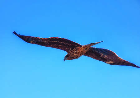 Black Kite flying at blue sky in Japan - Milvus migrans