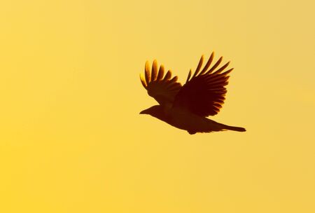 Silhouette of an eagle gliding gracefully against a vibrant orange sunset sky, embodying freedom and the beauty of wildlife