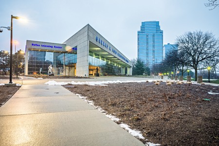 March 2017 Grand Rapids Michigan - Gerald ford presidential museum and learning center and city skyline