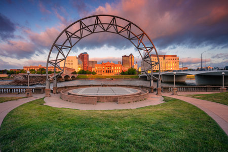 Des Moines, Iowa, USA. Cityscape image of Des Moines skyline, Iowa, USA at summer sunrise.