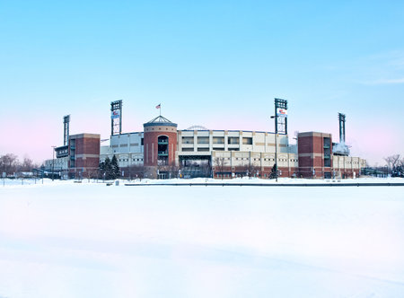 Syracuse, New York, USA. View of the NBT Bank Stadium , home of the Syracuse Mets, previously theChiefs minor league baseball team, in wintertime