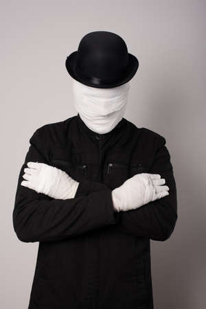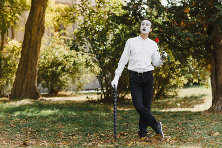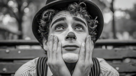 Portrait of a man, artist,clown,MIME.Shows up on something.