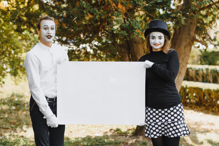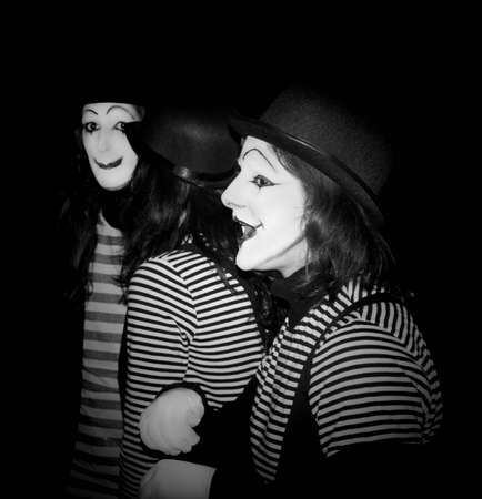 TIMISOARA, ROMANIA - MARCH 31, 2017: Pantomime couple with painted face, present on the street inside the CheckART Carnival organized by the City Hall Timisoara. Union Square.