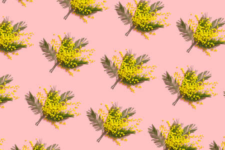 spring Mimosa flowers on yellow background, concept of spring season. symbol of 8 March, happy women's day