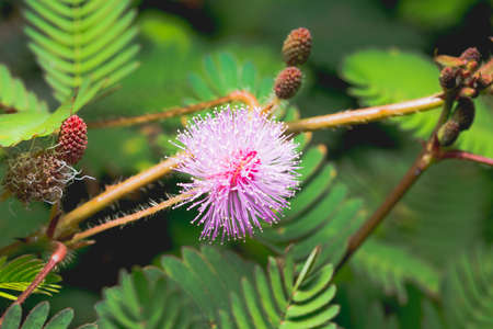 Mimosa pudica in blooom, beautiful pink and tiny flower macro