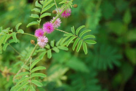 Beautiful blooming pink flower of sensitive plant (mimoza)
