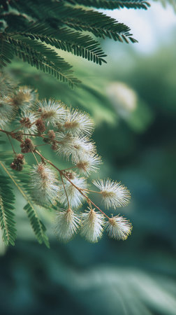 fragile branches from a silk tree in a garden in the summer