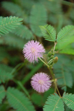 Sensitive plant or sleepy plant flowers (Mimosa pudica)