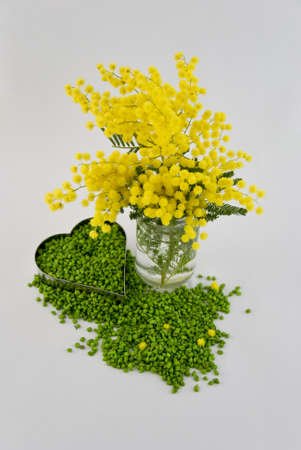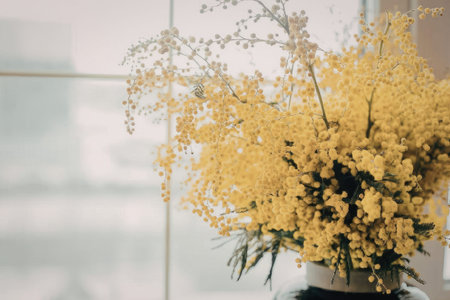 Acacia dealbata holiday vase flowers freshness bright mock up bouquet