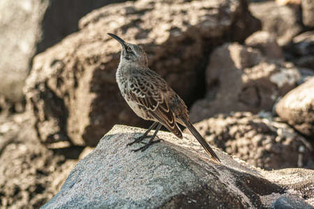 Espanola Mockingbird standing in a rock on a sunny day