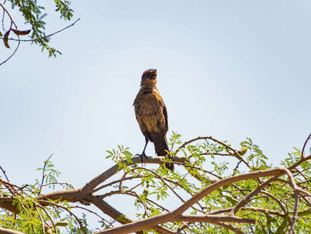 Close up shot of a Great tailed Grackle resting on a branch at Las Vegas, Nevada