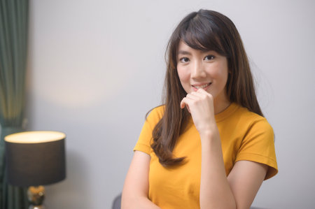 Young Asian girl wear yellow hat and T-Shirt on white background.