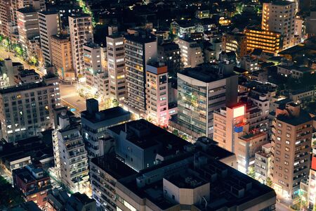 Tokyo urban skyscraper skyline rooftop view at night, Japan.