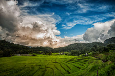 Beautiful morning view indonesia Panorama Landscape paddy fields with beauty color and sky natural light