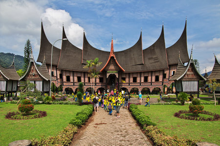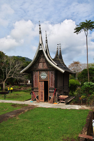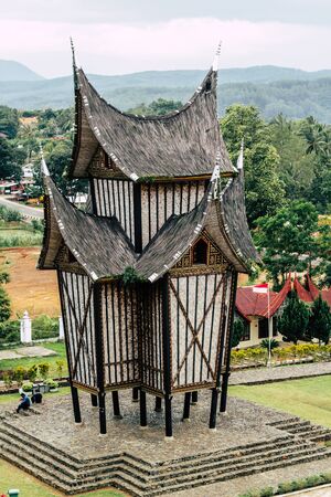 BUKITTINGGI, INDONESIA - DEC 22, 2013: Minangkabau traditional hous. Bukittinggi is the second biggest city in West Sumatra. It is located near the volcanoes Mount Singgalang and Mount Marapi