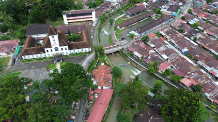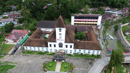 Aerial drone of Bukittinggi is a densely built city, a popular tourist spot. Sumatra. Indonesia.