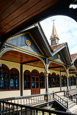 KON TUM, VIET NAM- AUG 22: Kontum wooden church, 100 years old, an ancient cathedral, religion heritage, famous place for travel, amazing architect make wonderful landscape, Vietnam, Aug 22, 2015