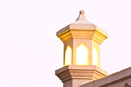 The minarat of a mosque during sunrise in Malaysia