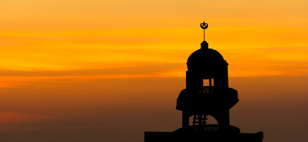 Dome of the mosque at sunset. Ramadan Kareem background.