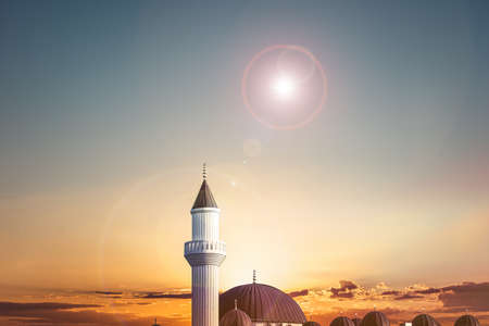 Dome of the mosque at sunset. Ramadan Kareem background.