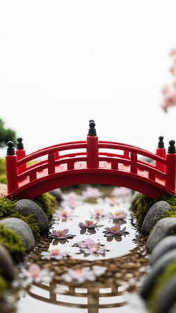 A vertical (9:16) editorial photograph showcasing an elaborate, hand-crafted miniature Japanese gard