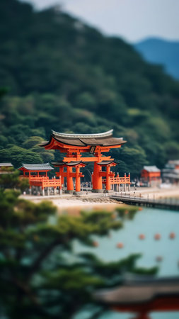 Generative AI : Aerial view of the Otonashijinja Shrine Torii Kochi Shikoku Japan