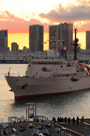 Landscape view at Daiba beach famous landmark at Japan.