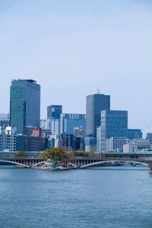 Bayside view of Tokyo Japan, with clear blue sky