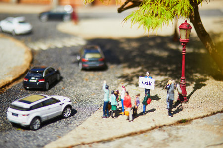 Miniature people in public during go to bus and keep distance in public society people. Concept of social distancing during COVID-19 coronavirus outbreak spreading