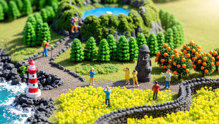 Korea's Jeju Dolharbang, canola flower fields, and sea scenery miniature