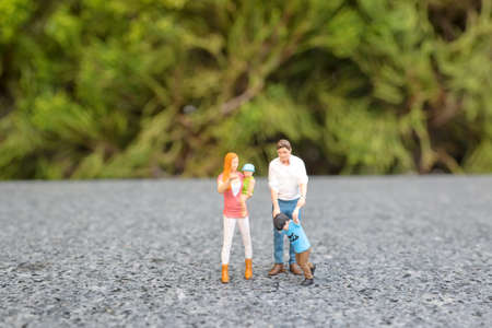 Miniature people - a couple of lover girl friend, twins, traveller with beautiful nature bokeh background