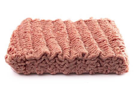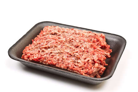 minced beef in a package isolated on white background