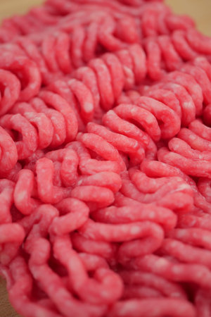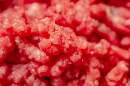 Macro photo of fresh ground beef Focus through the middle of image