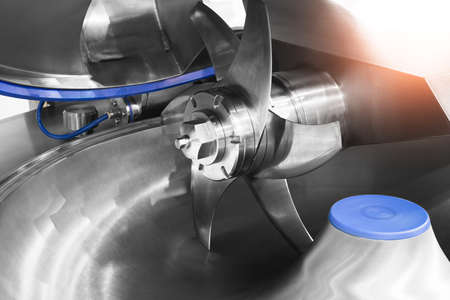 Industrial open mixer in food industry close-up