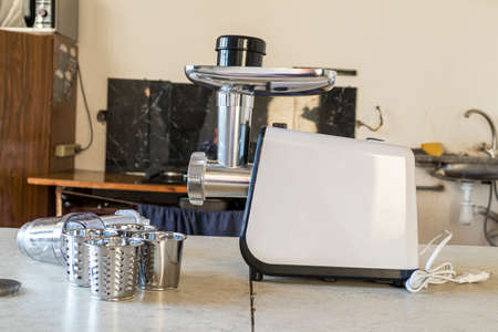 Electric meat grinder in a kitchen